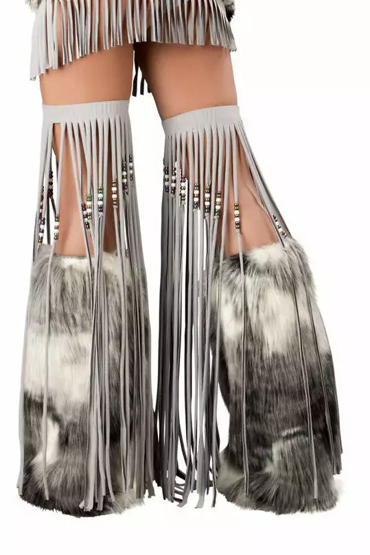 Silver Indian Beaded Fringe Leggings