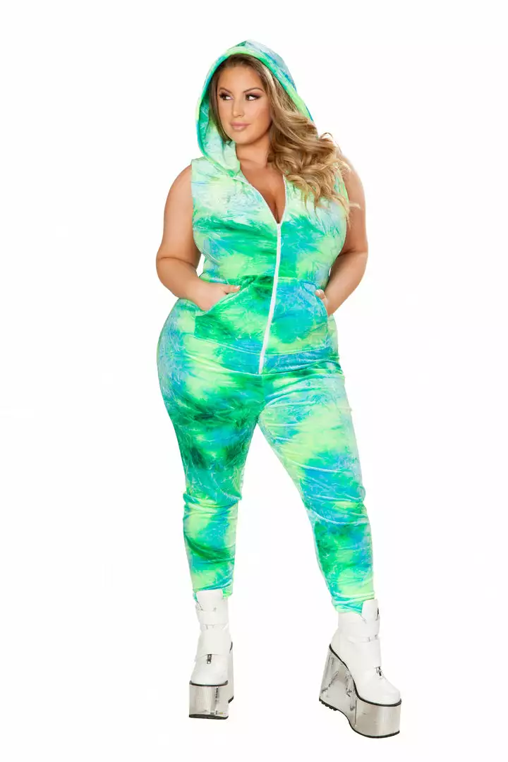 J-Valentine Catalog ONE PIECES FF186 – Tie Dye Velvet Zipper Front Jumpsuit