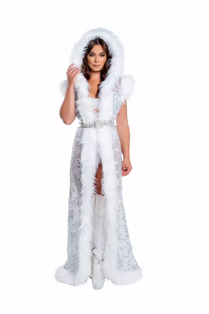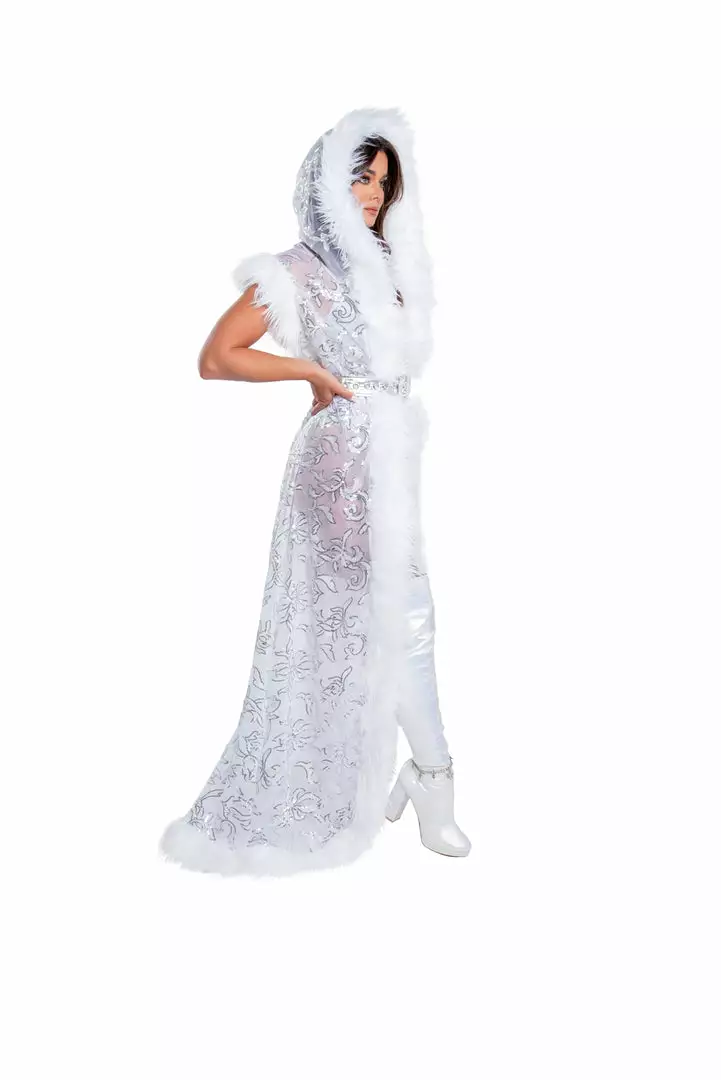 J-Valentine, Inc CH305 – Fur Trimmed Sequin Mesh Hooded Duster OUTERWEAR